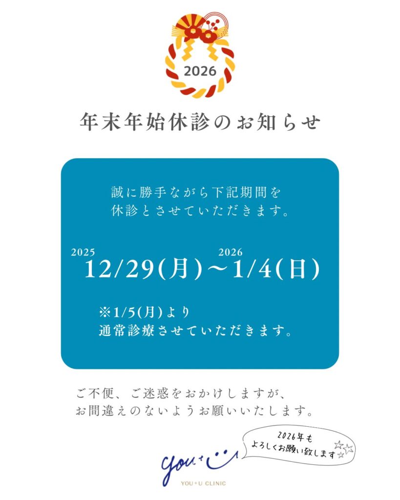 12月29日(月)〜 1月4日(日)まで休診となります。